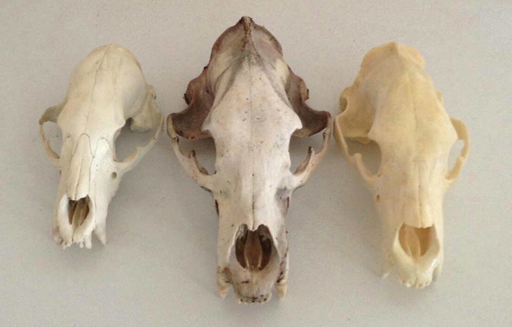 The skull of the bore featured on this page is in the center of two other big-bore skulls for the purpose of comparison.
