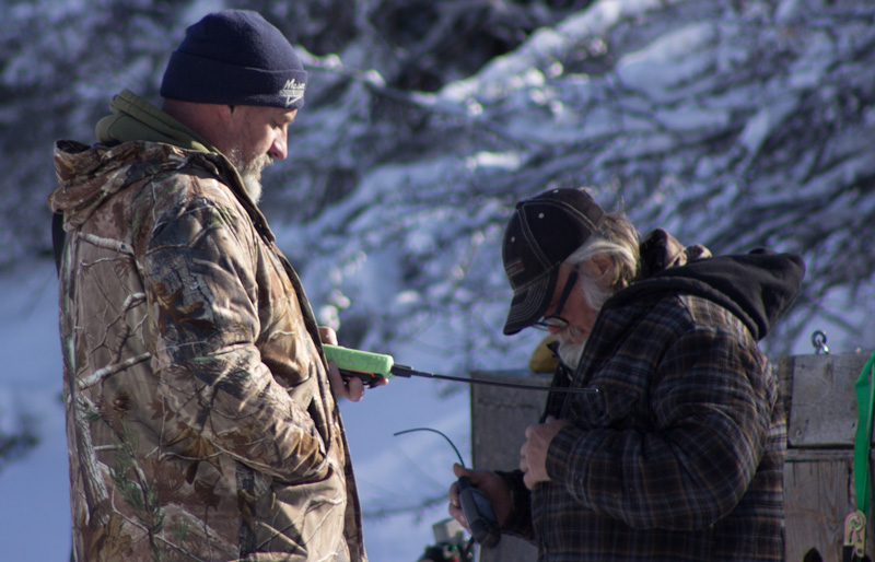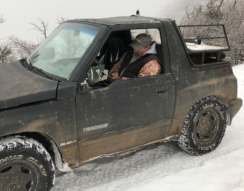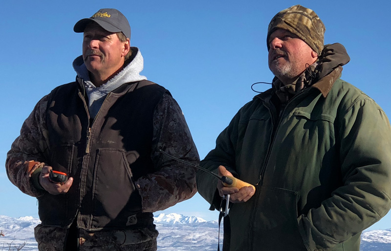 McCrae and Randy waiting for the GPS to show treed.
